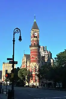 After the preservationist groups gained the support of Manhattan Borough President Edward Dudley and Mayor Robert Wagner, the clock was back in working order by 1961 and Gayle shifted her focus to preserving the building itself.[5] The courthouse was renovated in 1967 under the oversight of architect Giorgio Cavaglieri and now houses a branch of the New York Public Library.[9] This renovation was one of the first significant historical preservation projects in New York City, and set a precedent for a preservationist movement that would gain strength in the following decade.[9]