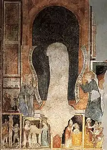 The first priest of Bozen, Rudolf is mention in 1195 on the occasion of a land exchange between the Upper Bavarian imperial abbey at Tegernsee and the Prince-Bishopric of Trent. Due to sparse sources from this time, it is unknown when the church was elevated to a parish church.[3] In 1259, Count Meinhard II acquired the lands of the parish and from this time, the parish church functioned as cella memoriae for the Tyrolean regents of the House of Gorizia and after 1363 for the Habsburgs.[3] This anniversary of the bequeathment of the Tyrolean assets to the Habsburgs (der jarttæg … der herschafft von Ósterreich) was confirmed by a settlement in 1435, in which the entire German part of the Prince-Bishopric of Trent committed to the octave of Maria Himmelfahrt.[4]