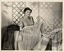 Born in Germany, Kipp was the first woman to study at the Staatliche Fachschule für Texitilindustrie (State Academy for the Textile Industry), from where she graduated in 1923 as a textile engineer. In 1924, Kipp and her first husband emigrated to the United States. They settled in Los Angeles where Kipp opened a successful studio, Ernst Haeckel Handweaves, in 1926. She founded Maria Kipp Handweaves in 1931, which specialized in handwoven furnishing fabrics for 60 years.[1] Modernist architects such as Rudolph Schindler and Richard Neutra sought out her designs for their interiors. Neutra used Kipp's designs in his own home, as did other prominent Southern California architects such as Welton Becket, who commissioned her to create interiors for the Bullock's chain of department stores, and Paul Revere Williams, who partnered with her to create interiors for celebrity homes and the Beverly Hills Polo Lounge.[2] Her list of celebrity clients also included Walt Disney and Claudette Colbert.