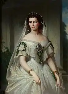 In the winter of 1857, at the age of 16, Marie Sophie's hand was sought by Francis II, Crown Prince of Naples, Duke of Calabria, and the eldest son of Ferdinand II of the Two Sicilies, King of Naples. The marriage was political, since Ferdinand wished to ally himself with the Emperor of Austria, Franz Josef I, a powerful fellow absolutist. At that time the kingdom was already threatened by revolutionary forces. At that time Marie Sophie had not experienced menarche, and underwent treatments to induce menses.[1] She also had to learn Italian. She was married by proxy. In January 1859 she traveled to Vienna to spend time with her sister before they went to Trieste to formally enter her new kingdom, and say farewell to her family on the Neapolitan royal yacht Fulminante. She set sail for Bari and on 3 February 1859 was married there.[2]