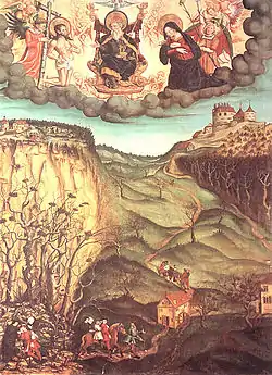 Mariastein originated as a place of pilgrimage in the late 14th century, with the legend of a miracle of the Blessed Virgin Mary; a stone chapel was first definitely mentioned in 1434. The Augustinian hermits of Basle had charge of the site.