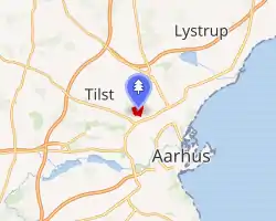 Marienlyst Park (Danish: Marienlystparken) is a public park in Hasle in the Aarhus V district, north-west Aarhus, Denmark.[1] The park is situated west of the Herredsvang neighborhood along the street Fjældevænget Busvej to the south and Brendstrup Forest to the west. Marienlyst Park is one of the largest parks in Aarhus and features both landscaped lawns and artificial forested hills. Facilities include an amphitheatre, soccer fields, playgrounds and a 6-hole golf course.[2] Marienlyst Park was established in connection with the development of western Hasle in the 1970s and today forms part of a green corridor extending from Vestereng to Brabrand Lake. The park is owned by Aarhus Municipality and is managed by the municipal department Natur og Miljø (Nature and Environment). Marienlyst Park can be rented for public events.[3][4]