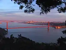 The area has views of San Francisco and, as such, is a tourist destination. One of the most common photographs of San Francisco is the view of the city from the Headlands with the towers of the Golden Gate Bridge just reaching out of the fog. On clear days, the site takes in views of the bay, including the Farallon Islands, Angel Island, Alcatraz, the San Francisco–Oakland Bay Bridge, the Golden Gate Bridge and the East Bay.