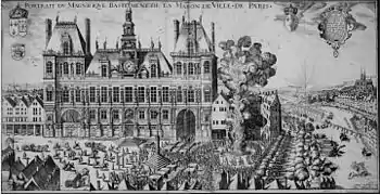- the reconstruction and expansion of the Hôtel de ville de Paris completed in 1625. This was his main work. On the inside of the portal of the north wing was the following inscription: "Marin de la Vallée, Parisian architect, began this great building in 1606, which had remained unfinished and imperfect for a long time, and fortunately finished it in the year of salvation 1628.[3]"