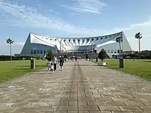 t is located on the site of Uminonakamichi Seaside Park located in Sandbar called "Uminonakamichi". Surrounded by the sea and parks, it is in an environment rich in nature, away from the hustle and bustle of the city, although it is in Fukuoka city. The building with a seashell motif has a semi-circular design, which is a characteristic appearance of a tent-shaped roof fixed with wires. The mascot character is "Mega Tot" with the motif of Megamouth. The character design is "Norio Hikone" designed by Uncle Carl.[2]