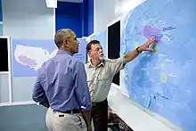 In the second year of his presidency, on July 19, 2010, Obama signed an executive order entitled "Stewardship of the Ocean, Our Coasts, and the Great Lakes."[3] This order created a policy framework for integrated marine spatial planning at the sub-national (regional) level. It also created a council of cabinet-level officials to coordinate policy under the nation's domestic and international rules for the oceans.[3] This executive order reflected many of the recommendations of the U.S. Commission on Ocean Policy in its 2004 report to Congress.[4] In 2014, the Obama administration inaugurated the "Our Ocean" series of annual conferences to build and promote international cooperation to protect the world's oceans. Members of the Obama administration testified on behalf of U.S. accession to the U.N. Convention on the Law of the Sea, to strengthen international norms respecting the freedom of navigation and for the sustainable development and use of marine resources. At the end of his second term in office, President Obama approved rules recommended by the National Ocean Council to combat illegal fishing on the high seas[5] and seafood mislabeling through import traceability and catch certification requirements.[6]