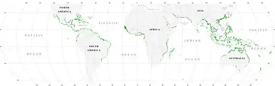 - Giri C, Ochieng E, Tieszen LL, Zhu Z, Singh A, Loveland T, et al. (2011) "Status and distribution of mangrove forests of the world using earth observation satellite data". Global Ecology and Biogeography, 20(1):154–159. doi:10.1111/j.1466-8238.2010.00584.x