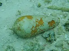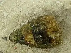 Unidentified bivalve, covered with a sponge