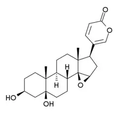 Marinobufagenin (marinobufagin) is a cardiotonic bufadienolide steroid. It can be found in the plasma and urine of human subjects with myocardial infarction, kidney failure, and heart failure.[1] It is also secreted by the toad Bufo rubescens[2] and other related species such as Bufo marinus. It is a vasoconstrictor with effects similar to digitalis.[3]