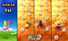 Mario Party: The Top 100 features 100 minigames that were previously featured in earlier games in the Mario Party series, all of which are taken from the home console entries. Most of the minigames were visually updated from the originals. Several minigames that appeared in Mario Party games for the Wii were reworked to properly function on the Nintendo 3DS, which lacks the Wii's motion controls.[7] The game features several game modes; in Minigame Match, players take turns moving around a single game board, with the goal being to collect the most coins and stars as in previous Mario Party titles.[8] Minigame Island consists of playing through pre-selected minigames to advance along a linear path. The game also includes a freeplay mode in which the player can choose which minigames to play.[8] 41 of the game's 100 minigames must be unlocked by first playing through Minigame Island.[9][7] The game supports multiplayer for up to four players, either through the use of individual copies of the game or through 3DS download play with only player required to have a copy of the game.[7]