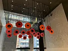 In 2010 a 15-year retrospective of Borgelt's work, Mind and Matter, was held at Drill Hall Gallery at the Australian National University in Canberra. Her diverse use of mediums and documentation of large-scale commission works illustrated her ongoing investigation of optics, structures and natural elements.[29] In 2011 she was commissioned by Bates Smart to create Candescent Moon, a large-scale work of a lunar cycle for 101 Collins Street, Melbourne. An optical illusion plays with the eye when moving from one side to the other, encouraging interactivity with the work. In 2016 a 20-year survey, Marion Borgelt: Memory & Symbol, was held at the Newcastle Art Gallery. These works, spanning from 1993 to 2016, prompted recognition of the invention, consistency and versatility in Borgelt's practice.[30] In 2017 Borgelt was commissioned to create a kinetic work that spans a three-storey atrium for Baker McKenzie at Tower One, Barangaroo, New South Wales. The motorised work, Cascadence, alludes to the notion of descending droplets as coloured elements rotate. In 2018 Borgelt was commissioned by Melco Crown Resorts in Macau to create a suite of large digital face-mounted photographs for 52 lift lobbies of the Morpheus (hotel), design by Zaha Hadid Architects.[31]