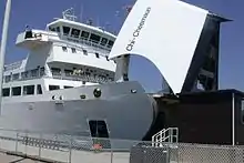 Roll-on/roll-off ships are ships designed to transport wheeled cargo such as automobiles, trailers or railway carriages. RORO (or ro/ro) vessels have built-in ramps which allow the cargo to be efficiently "rolled on" and "rolled off" the vessel when in port. While smaller ferries that operate across rivers and other short distances still often have built-in ramps, the term RORO is generally reserved for larger ocean-going vessels, including pure car/truck carrier (PCTC) ships. |