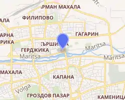 It is situated on the northern bank of the Maritsa river, facing the International Fair Plovdiv across the Tsar Boris III Boulevard, in the city's northern district.