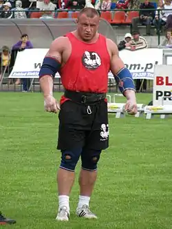 Mariusz Zbigniew Pudzianowski (Polish pronunciation: [ˈmarjuʂ pudʑaˈnɔfskʲi]; born 7 February 1977), also known as "Pudzian" and "Dominator", is a Polish entrepreneur, former strongman competitor and current mixed martial artist. With a record 70% international winning percentage in his strongman career[4] he is widely considered by many to be the greatest strength athlete of all time. During his career as a strongman, Pudzianowski won five World's Strongest Man titles, the most in history.[5] He also won two runner-up titles in 2006 and 2009. In 2009, Pudzianowski debuted as a mixed martial artist. He is currently ranked #3 in the KSW Heavyweight rankings.[6]