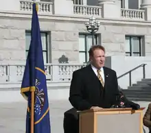In 2015, Senator Madsen introduced a medical marijuana bill, S.B.259, which failed because the legislature wanted to study the issue further during the interim before acting.[15] In 2016, Madsen once again presented a medical marijuana bill. During this session, Madsen's bill had competition. Senator Evan Vickers introduced S.B. 89, this bill was a scaled back marijuana bill. During the session his difficulties increased when the Church of Jesus Christ of Latter-Day Saints said it opposed his bill. Still, Madsen, who is Mormon, continued to support his bill because polls show most Utah residents support the proposed law. "It would be immoral to back down," he said.[3] After making 7 amendments to the bill, the LDS Church acknowledged that the changes were substantial.[16] The bill, S.B. 73, passed out of the Senate, but died in the House Health and Human Services Committee.[17] Neither of the marijuana bills passed during the 2016 Session.