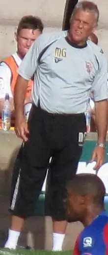 In December 2010, he was made joint caretaker manager at Vale, along with Geoff Horsfield, following the departure of Micky Adams.[20] Vale were hammered 5–0 by Rotherham United in his first game in charge,[21] but rallied to beat Burton Albion 2–1,[22] before Jim Gannon was appointed manager.[23] During Adams' reign Grew had doubled up as a first team coach, but when Gannon arrived at the club Grew chose to focus solely on his role as youth team coach.[24] Following Gannon's swift departure in March 2011, Grew was elevated to the position of caretaker-manager for the third time in twelve years.[25] Assisted by Horsfield, Marc Richards told the press that "it's absolutely brilliant that Grewy and Geoff are in charge again".[26] After his first match back in charge ended in a 1–1 draw, Grew stated that if offered the job first time he would "seriously consider it".[27] Defeat to bottom club Stockport County all but ended the club's promotion campaign, as well as Grew's hopes of a permanent appointment. He slammed both his players and the directors, claiming that "I was never in the picture to become the next manager".[28]