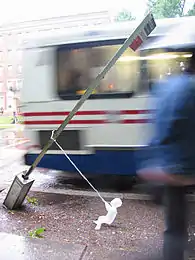 Mark Jenkins (born 1970) is an American artist who makes sculptural street installations. Jenkins' practice of street art is to use the "street as a stage" where his sculptures interact with the surrounding environment including passersby who unknowingly become actors.[1] His installations often draw the attention of the police.[2][3][4] His work has been described as whimsical, macabre, shocking and situationist.[5] Jenkins cites Juan Muñoz as his initial inspiration.[6][7]