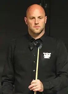 King began the 2012–13 season by failing to qualify for three of the first four ranking events.[20] The one he did reach was the Shanghai Masters, where he beat Zhao Xintong 5–3 in the wildcard round and local favourite Ding Junhui 5–4 in the first round, having trailed 0–3.[21] He lost 3–5 to Shaun Murphy in the following round.[22] King saw off Mark Williams 6–3 in the first round of the 2012 UK Championship, before surrendering a 3–0 lead against 17-year-old Luca Brecel to lose 4–6.[23] He also reached the second round of the German Masters by whitewashing Stephen Maguire 5–0, but then lost in a deciding frame to Matthew Stevens.[20] King failed to qualify for the World Open and lost in the first round of the Welsh Open and China Open.[20] He faced Mark Allen in the opening round of the World Snooker Championship and produced a big shock by fighting back from 6–8 down to produce his best snooker at the end of the match in a 10–8 win.[24] He raced into a 6–2 lead in the first session of his second round match against Ding Junhui, before falling 7–9 behind in the next session and ultimately lost 9–13.[25] King ended the season ranked world number 29.[26]