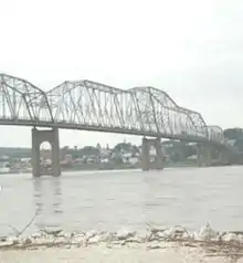 The Mark Twain Memorial Bridge was a cantilevered through truss bridge carrying US 36 over the Mississippi River. It was replaced in 2000 with the extension of I-72 and subsequently demolished.