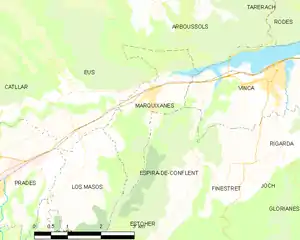Marquixanes is located in the canton of Le Canigou and in the arrondissement of Prades.