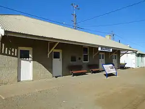 ![]() The former Marree railway station building, with an explanatory sign outside, in 2013 | |