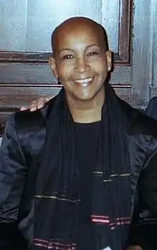 Three months after Hair opened, Hunt was on the cover of British high-fashion magazine Queen, the first black model to appear on their cover.[3] In 1968, Hunt posed nude for photographer Patrick Lichfield after the opening night for Hair[16] and the photo appeared on the cover of British Vogue's January 1969 issue.[17] Almost 40 years later Hunt again posed nude for Litchfield,[16] recreating the pose for her Vogue cover five weeks after she had had her right breast and lymph glands removed to halt the spread of cancer.[18] The photo appeared on the cover of her 2005 book Undefeated, about her battle with cancer.[18] She was pleased to work with the photographer under such differing circumstances, although in her autobiography she expressed confusion as to why the photo has been so often reprinted.[6] Hunt has also been photographed by Lewis Morley and Horace Ové.[19]