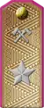 The rank insignia of marshal of the branch was a large (~50mm-wide) five-pointed shoulder board star (at the time the same star was used on the shoulder boards of marshals of the Soviet Union). A marshal of the branch wore the second level five-pointed marshal's star on his uniform necktie.