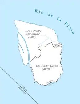At the time of the treaty the channel between these islands comprised an enormous stream load which, since the date of the treaty, has effected a physical union of the Uruguayan island with Martín García. Thus, the boundary between Martín Garcia and Timoteo Domínguez has now become the only existing land frontier between the Republic of Argentina and the Oriental Republic of Uruguay.[9]