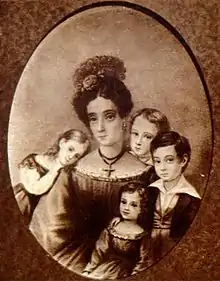 Ribeiro de Andrade married his niece Gabriela Frederica, daughter of Jose Bonifacio de Andrada e Silva, in Santos on 15 November 1820. They had three sons. Martim Francisco Ribeiro de Andrada II (born 1825) was deputy for São Paulo, Minister of Foreign Affairs (1866) and president of the Chamber of Deputies during the Second Empire (1882). José Bonifácio the Younger (born 1827) was a writer, senator of the Empire of Brazil and Minister of the Navy of Brazil. Antônio Carlos Ribeiro de Andrada (born 1836) was deputy for Minas Gerais in the House (1885) and Senator of the Constituent State (1891). Their two daughters were Maria Flora de Andrada and Narcisa de Andrada.[7]