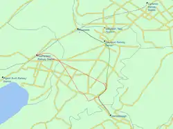 ![]() Site of the proposed Martinborough railway station and terminus of the Martinborough Branch line, behind the church on the corner of Princess Street and Kitchener Street. | |||