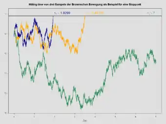 A stopping time with respect to a sequence of random variables X1, X2, X3, ... is a random variable τ with the property that for each t, the occurrence or non-occurrence of the event τ = t depends only on the values of X1, X2, X3, ..., Xt. The intuition behind the definition is that at any particular time t, you can look at the sequence so far and tell if it is time to stop. An example in real life might be the time at which a gambler leaves the gambling table, which might be a function of their previous winnings (for example, he might leave only when he goes broke), but he can't choose to go or stay based on the outcome of games that haven't been played yet.