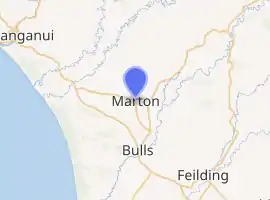 Marton (Māori: Tutaenui) is a town in the Rangitikei district of the Manawatū-Whanganui region of New Zealand's North Island. It is situated 35 kilometres southeast of Whanganui and 40 kilometres northwest of Palmerston North.