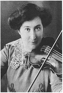 Her father died in 1883, and her mother moved the family to Wiesbaden, Germany, where she received her first violin lessons at the age of six.[2] Against the wishes of her family, she moved to London around 1897–98, where she briefly studied with composer Samuel Coleridge-Taylor at the Croydon Conservatory of Music and performed his Gypsy Suite, Op. 20 (1898).[2] She may also have studied composition with him, and he dedicated at least one of his subsequent works to her.[2]