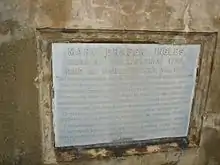 The Ingles had four more children: Mary, Susan, Rhoda (b.1762), and John (1766-1836).[22][23] In 1762, William and Mary established the Ingles Ferry across the New River, and the associated Ingles Ferry Hill Tavern and blacksmith shop.[24] She died there in 1815, aged 83.[1] The site of her former log cabin, with a stable and a family cemetery, is protected as part of the Ingles Bottom Archeological Sites.[25]