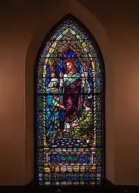 The University of Virginia Christian community remembers Smith positively. A stained glass window 4.0 m (13 ft) high in the University Chapel is dedicated to her memory.[12] Smith's connection with the chapel is not otherwise documented. Record of the original funding and construction of the chapel, which coincide with Smith's lifelong campus residency, indicates the formation in 1883 of the Ladies Chapel Aid Society, prior to the laying of the chapel's cornerstone in 1885 and completion in 1889.[12] The chapel's exhibit at the university's library indicates, "A chapel was finally built on the grounds in the 1880s after a successful campaign led by women dedicated to the spiritual needs of the University community." Library records further show total funds raised were about $36,000.[12][13]