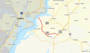 ![]() Map of Southern Maryland with MD 227 highlighted in red | ||||