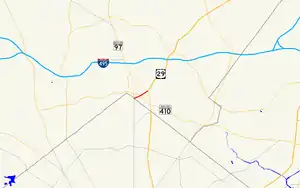 | 0.53 | 0.85 | Eastern terminus; southern terminus of MD 97; no direct access from northbound US 29 (Georgia Avenue) to westbound MD 384 or from MD 384 to northbound MD 97 | |||
