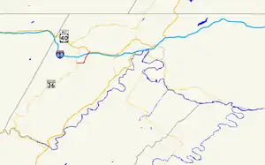 MD 55 was paved from Clarysville to Vale Summit by 1921.[5] The Vale Summit–Midland segment of the highway was constructed around 1938.[6] When US 40 was relocated in Clarysville around 1950, MD 55 was extended north a short distance to meet the new alignment.[7] MD 55 itself was rebuilt and widened from Clarysville to Vale Summit in 1952 and from there to Midland in 1954.[8] As part of MD 36's relocation between Midland and Frostburg, MD 36 took over the section of MD 55 between Midland and Vale Summit in 1972, leaving MD 55 at its present length.[9]