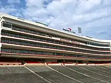Between 2007 and 2009, the stadium underwent a $50.8 million expansion, increasing overall capacity, adding skyboxes and lowering the field to improve spectators' sightlines.[11] The project rebuilt Tyser Tower, adding 63 suites and mezzanine seating. The expansion increased the stadium capacity to 54,000.[12] A second LED video board was installed on the west side of the stadium before the 2008 season.[11] The university had also announced plans to extend the upper deck around the west endzone, adding another 8,000 seats, but the expansion project was completed without this construction.