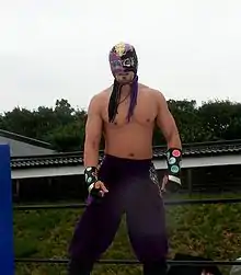 Masamune (政宗, Masamune)[3] (born August 16, 1974) is a masked Japanese professional wrestler. He currently works for Dotonbori Pro Wrestling and has also worked for Kaientai Dojo and Osaka Pro Wrestling in Japan.[2] For several years he formed a tag team with Japanese wrestler Hideyoshi and was also part of a group known as Bad Force. Greatly influenced by lucha libre, Masamune has followed Mexican tradition for masked wrestlers, so his real name is not a matter of public record.