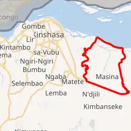 Masina, together with the communes of Ndjili and Kimbanseke, belong to the district of Tshangu 20 km east of central Kinshasa.[4]
