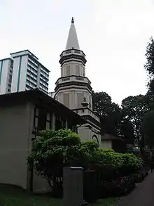 The Hajjah Fatimah Mosque (Malay: Masjid Hajjah Fatimah, Jawi: مَسْجِد ٱلْحَاجَّة فَاطِمَة) is a mosque located along Beach Road in the Kampong Glam district within the Kallang Planning Area in Singapore. The mosque was designed in a mix of Islamic and European architectural styles, and completed in 1846. The mosque is named after an aristocratic Malay lady, Hajjah Fatimah, who commissioned its construction.[1]