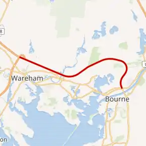 Route 25 is a 10 mi (16 km)-long state highway located in Plymouth County and Barnstable County, Massachusetts, United States. The route is a nominally east–west freeway for its entire length, and less commonly known as the Blue Star Memorial Highway. An eastward continuation of Interstate 495, Route 25 provides freeway access to Cape Cod. The route's western terminus is at a trumpet interchange with I-495 and I-195 in West Wareham. The route has three numbered interchanges along its length before terminating at the northern end of the Bourne Bridge in Bourne; the mainline of Route 25 continues across the bridge and over the Cape Cod Canal as Massachusetts Route 28 south.