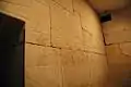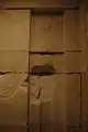 The substructure of Kaninisut's mastaba was a 17 m deep vertical shaft grave, which led, via a short corridor, to a grave chamber roughly hewn from the rock. The rough execution of the grave chamber stands in sharp contrast to the fine execution of the cult chamber. Apparently, the underground spaces' execution was increasingly neglected in the later fourth dynasty. No remains of the deceased could be found.[6]