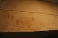 On the east wall above the entrance are two ship scenes. The upper scene depicts a sail boat, the lower a row boat. A long narrow band underneath the boats symbolises the water and simultaneously forms the dividing line between the two scenes. Kaninisut is depicted standing at the middle of each boat, with a stick for support. The ship scenes depict the journeys of the deceased in the afterlife to the old capitals of Buto and Heliopolis.[9]