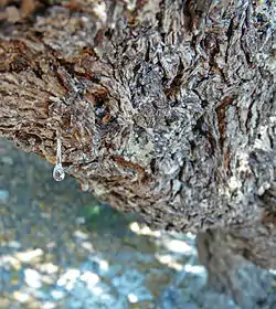 Mastic (Greek: Μαστίχα) is a resin obtained from the mastic tree (Pistacia lentiscus). It is also known as tears of Chios, being traditionally produced on the island Chios, and, like other natural resins, is produced in "tears" or droplets.