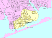 Mastic Beach is a hamlet and census-designated place, and former village in the southeastern part of the Town of Brookhaven in Suffolk County, on Long Island, in New York, United States. The population was 14,849 at the 2010 census, when it was an unincorporated census-designated place for the first time.[4][5]