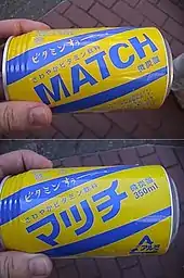 Match (マッチ, Macchi) is a carbonated Japanese soft drink. Match is sold in 270ml (In a plastic bottle), 350ml (Can), 480ml (Can), and 500ml (in a plastic bottle), and 1.5L (in a plastic bottle).[1]