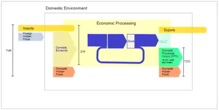 • Domestic processed output (DPO) is defined by the OECD as "the total mass of materials which have been used in the national economy, before flowing into the environment. These flows occur at the processing, manufacturing, use, and final disposal stages of the economic production-consumption chain."[7]