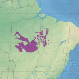 Some sources include the ecoregion in the Amazon biome.[3] In the northwest it adjoins the Madeira–Tapajós moist forests and Tapajós–Xingu moist forests ecoregions, and extends north for some distance between them. In the east patches of the Mato Grosso tropical dry forests are interspersed with the Xingu–Tocantins–Araguaia moist forests and extend as far as the Tocantins–Araguaia–Maranhão moist forests. In the south and east the Mato Grosso tropical dry forests meet the Cerrado ecoregion.[4]